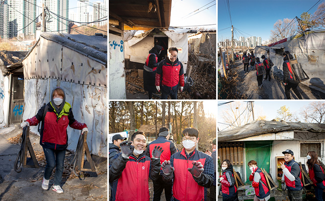 구룡마을은 중계동 보다 주거환경이 안 좋아 보입니다. 지번도 없이 모여있는 집들은 건너편에 보이는 새로 지은 아파트와 너무나도 대비되는 풍경이었습니다. 100장씩 60여 가정으로 연탄을 날랐지만 그리 오래 사용할 수 있는 양은 아닙니다. 연탄으로 겨울을 나는 가구가 있는 마을들의 재개발 소식이 들리고 있어 연탄이 필요한 곳이 언제까지 남아 있을지 모르겠지만, 마을이 우리의 손길을 필요로 할 때까지 네오위즈의 연탄 나르기는 계속됩니다. 연탄을 받으시는 분들이 조금이라도 따뜻한 겨울을 보내시고 더 안정된 곳에 터전을 가질 수 있기를 바라는 마음입니다.